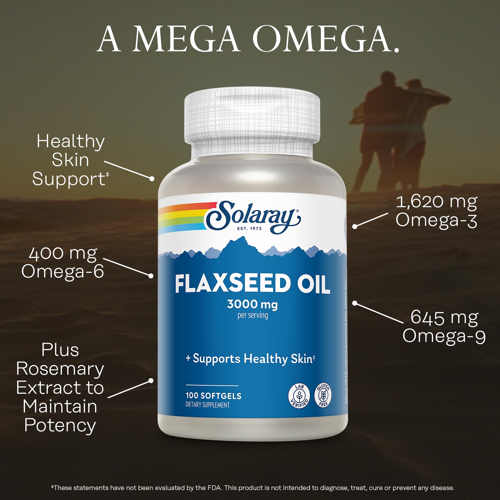 SOLARAY Flaxseed Oil 3000 mg with Omega 3 6 9, Flax Seed Softgels for Skin Health, Triple Omega Supplement, Non-GMO, Gluten Free, Lab Verified - 60-Day Guarantee - 33 Servings, 100 Softgels