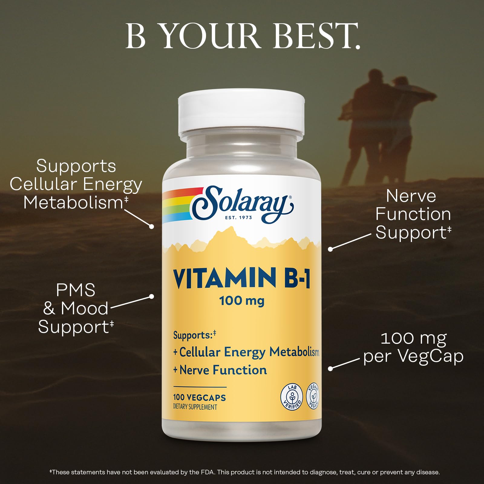 SOLARAY Vitamin B-1 100 mg | Healthy Energy Metabolism, Skin, Brain, Heart & Nervous System Support | 100 VegCaps—